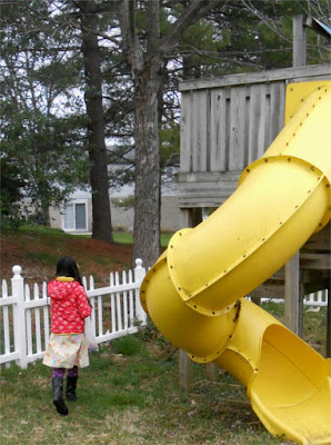 I fear this might have been the last Easter Egg Hunt at my house. Ben, who is 13, at first said he didn't want to hunt eggs this year, and Clara was ambivalent about doing it by herself. But Ben changed his mind, so the egg hunt was on for at least one more year. Clara, in her carefully selected egg hunting outfit, off on the hunt.