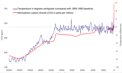 And the question that matters, and that we cannot answer, is why the global temperature, which seems to track the level of carbon dioxide in the atmosphere, has gotten decoupled from it in recent decades. As you can see in the graph above, the CO2 level has soared in recent decades while the plant has warmed only a little. Is that because some other mechanism cancels out the effect of all that greenhouse gas? Or is it because the change is just taking some time to work its way through the system? Most scientists are betting on the latter, and if they are right we are in for terrible trouble.