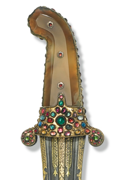 An Ottoman agate-hilted dagger with gem-set silver scabbard, Turkey, probably 18th century