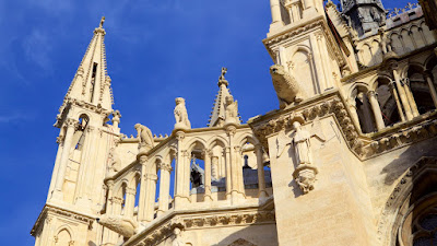 But of course the real reason I am writing about Reims now is that it was very heavily damaged during World War I, when the roof burned even more completely than that of Notre Dame de Paris this year. Witnesses said that when the lead on the roof melted it poured out of the mouths of the gargoyles.