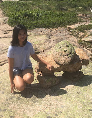 Younger daughter with an amusing cairn.