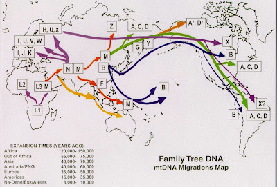 I was impressed yesterday by two recent studies of DNA from old skeletons in Europe that both found great diversity in mitochondrial DNA (the kind that passes only through the female line). One involved six individuals from the Neolithic Rössen Culture of Germanay, ca. 4500 BCE; these six people fell into four different mtDMA lineages, H5, HV0, U5, and K. This was already a mixed population.